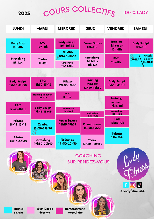 Veuillez trouver ci-dessous nos horaires pour les cours collectifs,